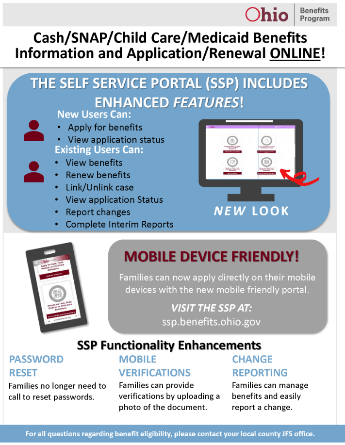 Now you can apply for cash assistance, food assistance and Medicaid online, wherever you can access the internet. Just go to https://benefits.ohio.gov and click “Apply for Benefits.”
