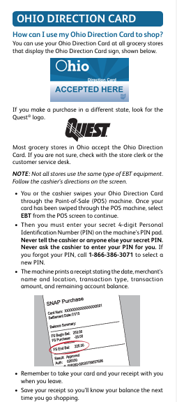 According to the Federal Food and Nutrition Service, Ohio is among a number of states being targeted by criminals stealing Supplemental Nutrition Assistance Program (SNAP) benefits. This is known as skimming. In skimming, criminals use a device placed over a point-of-sale card reader that steals information from payment cards like SNAP EBT and cash assistance cards. This means SNAP or cash assistance benefits could be stolen without you knowing.